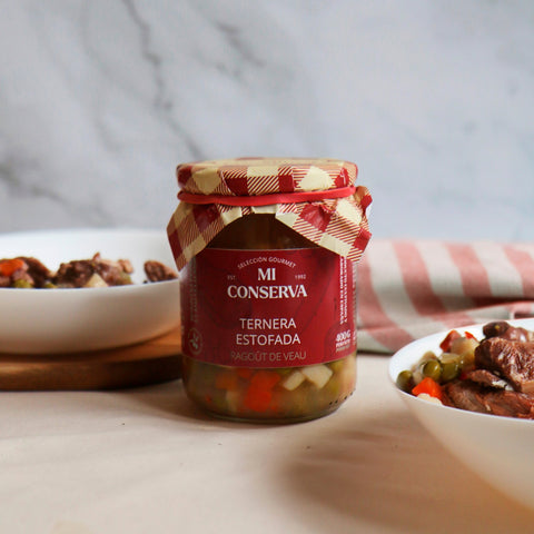 Guisos tradicionales cocinados a fuego lento y conservados en aceite de oliva o en su propia salsa: abre, calienta y disfruta comida real, práctica y con sabor casero.